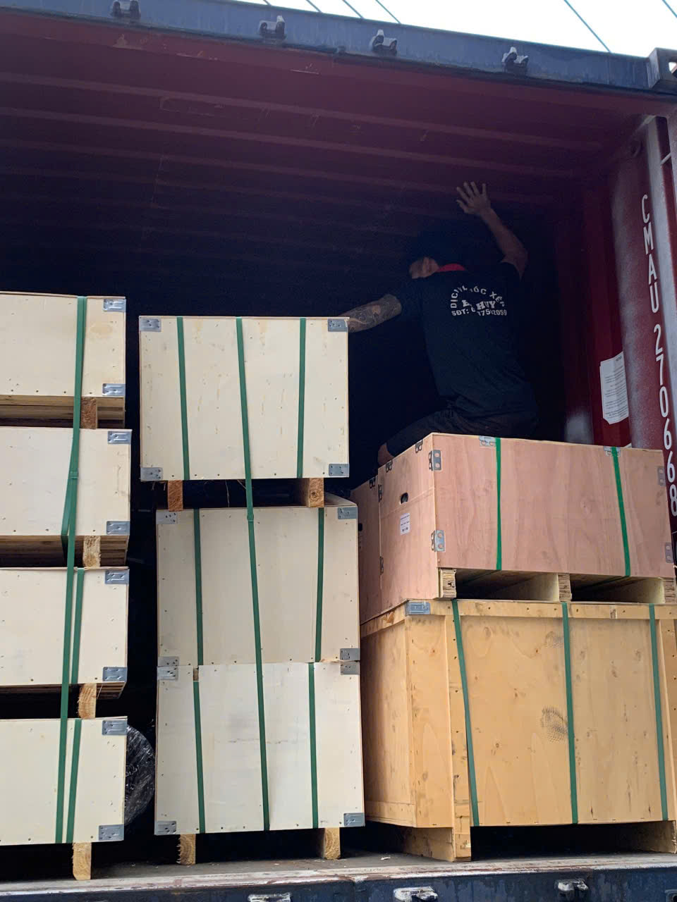 Thiết bị hỗ trợ đầy đủ: xe nâng, xe đẩy, pallet, dây chằng hàng.